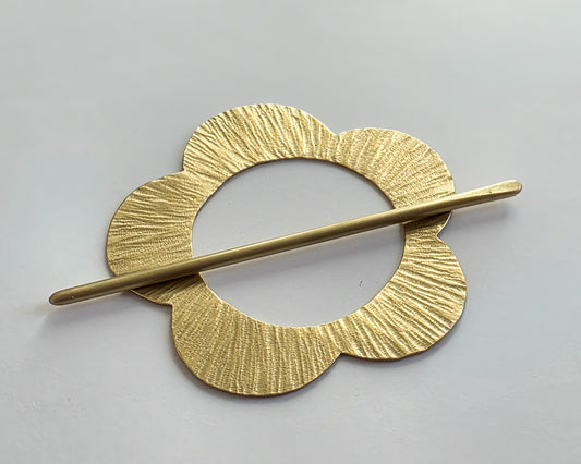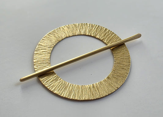 Handcrafted large circle hair stick barrette pin | Gold brushed brass round hair bun holder