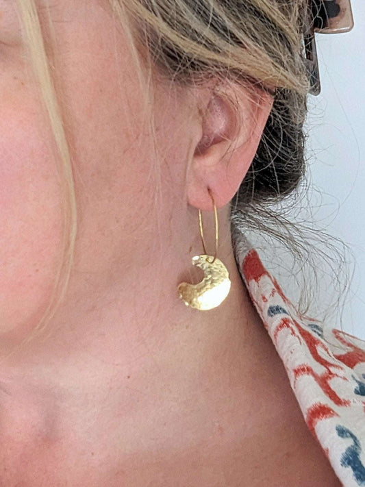 Handcrafted Beaten Brass Daisy Hoop Earrings