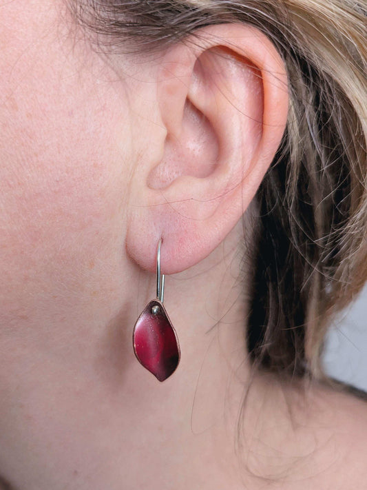 Handcrafted Autumn Leaf Dangle Earrings in Sterling Silver & Copper Patina