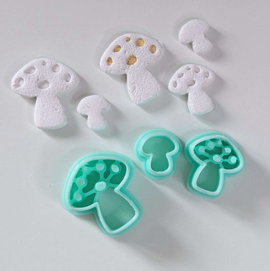 Mushroom polymer clay jewellery cutter shape & stamp set | Micro, Small & Medium | Mica powder