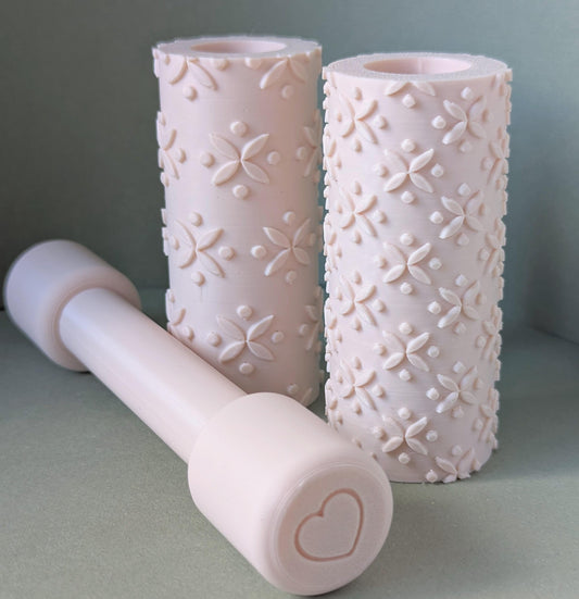 Retro flower & dot seamless pattern clay hand roller embossing set