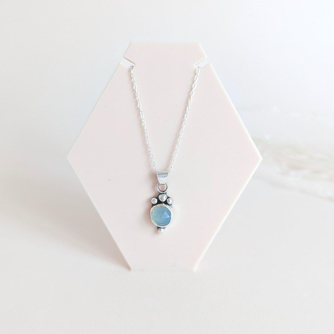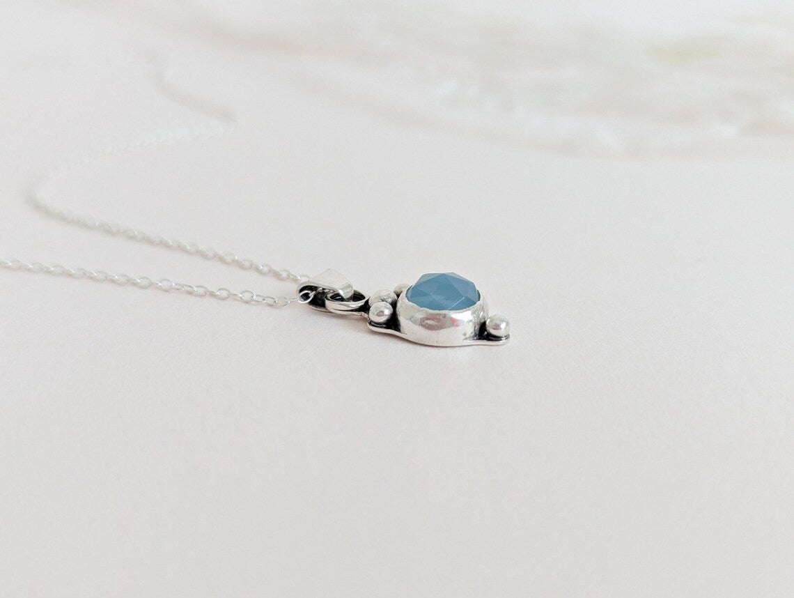 Dainty aqua blue Chalcedony rose cut sterling silver water drop pendant necklace