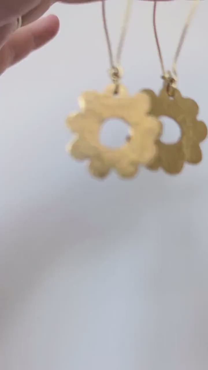 Handcrafted Beaten Brass Daisy Hoop Earrings
