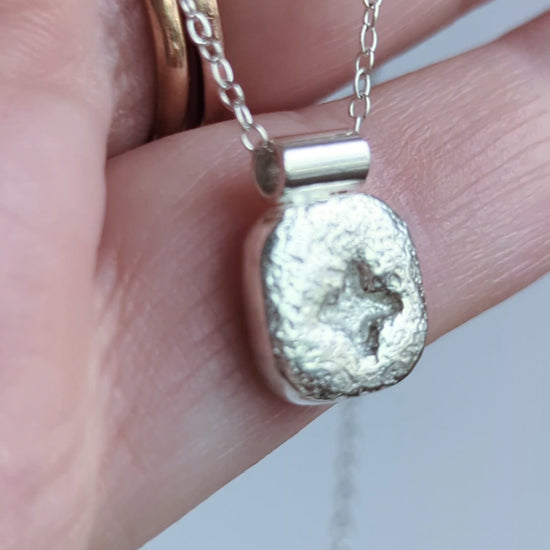 Each pendant is made from start to finish in my own studio. I have made these little custom star pillows by sand casting my original designs in sterling silver, and then filing, polishing and finishing to give two contrasting textures. The front has an organic stippled texture which is what I imagine moon rock might look like!